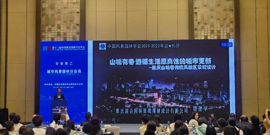 学院副院长周建华教授在“城市风景园林分会场”发表题为《山城有巷——遵循生活原真性的城市微更新》的主题报告,报告以重庆山城巷为例,深度挖掘山城巷子历史痕迹,沿袭山城市井生活文脉,遵循“小规模·低冲击·精细化”的更新策略,提出“风貌原真的融合、街巷原形的疏通、场所原象的营造、地景原貌的再生、人情原味的共融”等五大街巷更新价值体系,为推动高质量发展时期的山地城市更新提供了重要理论支撑和实践参考。