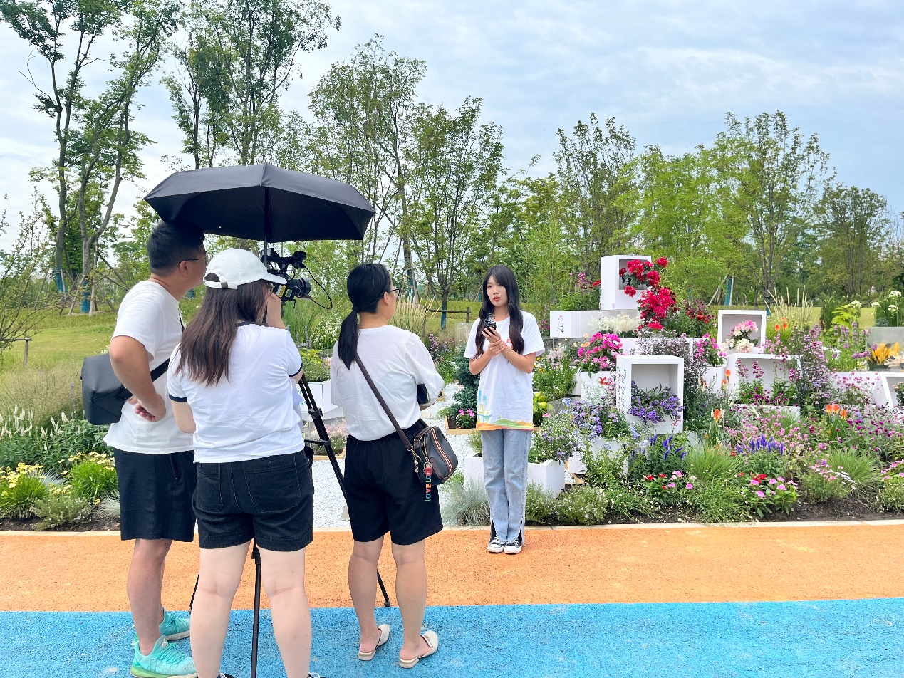研究生宋玢瑶同学作为本次花境竞赛的唯一学生代表接受四川新闻网等媒体采访报道。