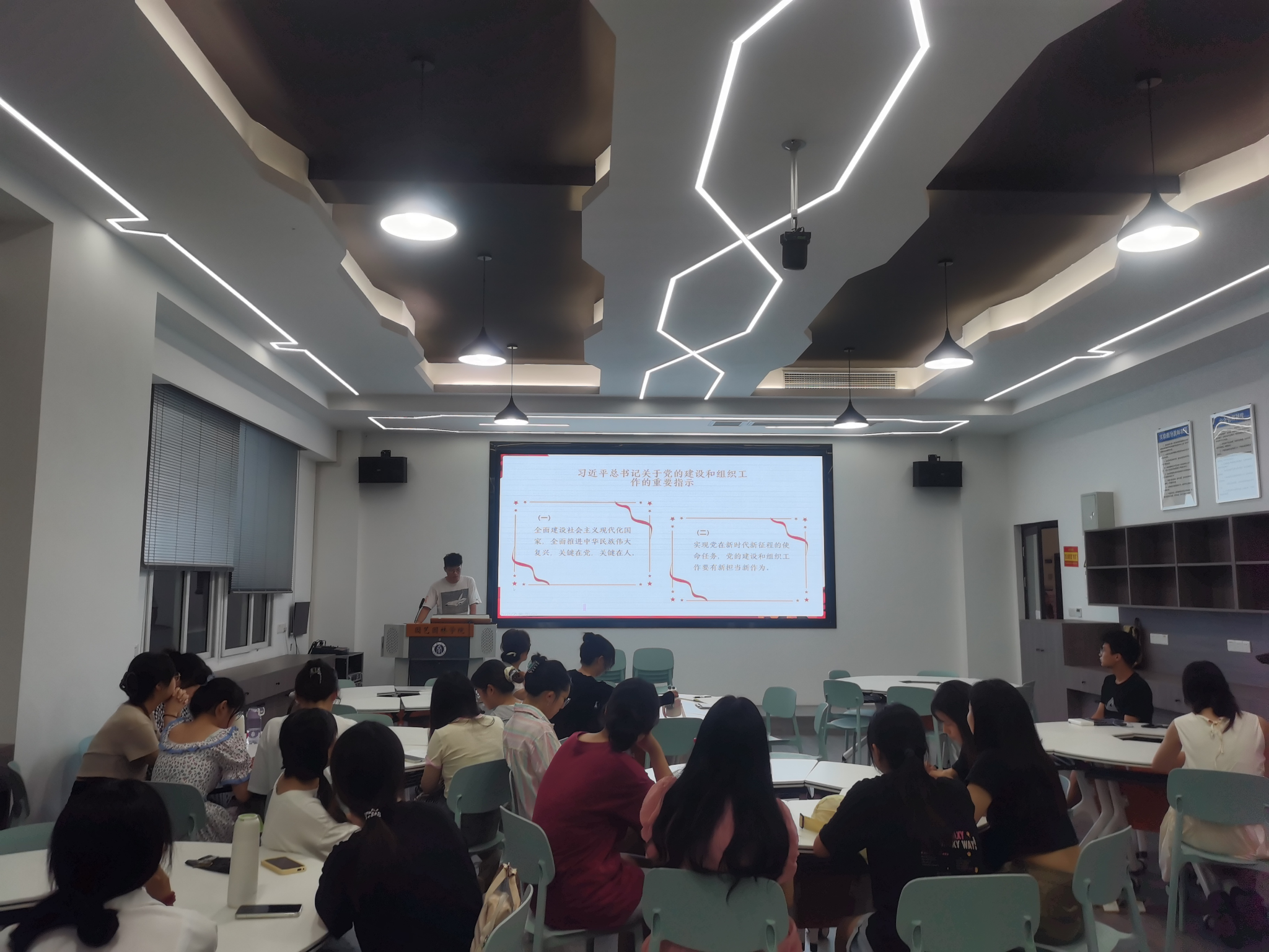研究生第六党支部在33教508开展了主题为“学习贯彻习近平新时代中国特色社会主义思想”专题组织生活会。蹲点支部的原学院党委书记李雪梅、党支部书记辛儒鸿、支部党员及入党积极分子共20余人参加会议,会议由支部宣传委员林薏同志主持。