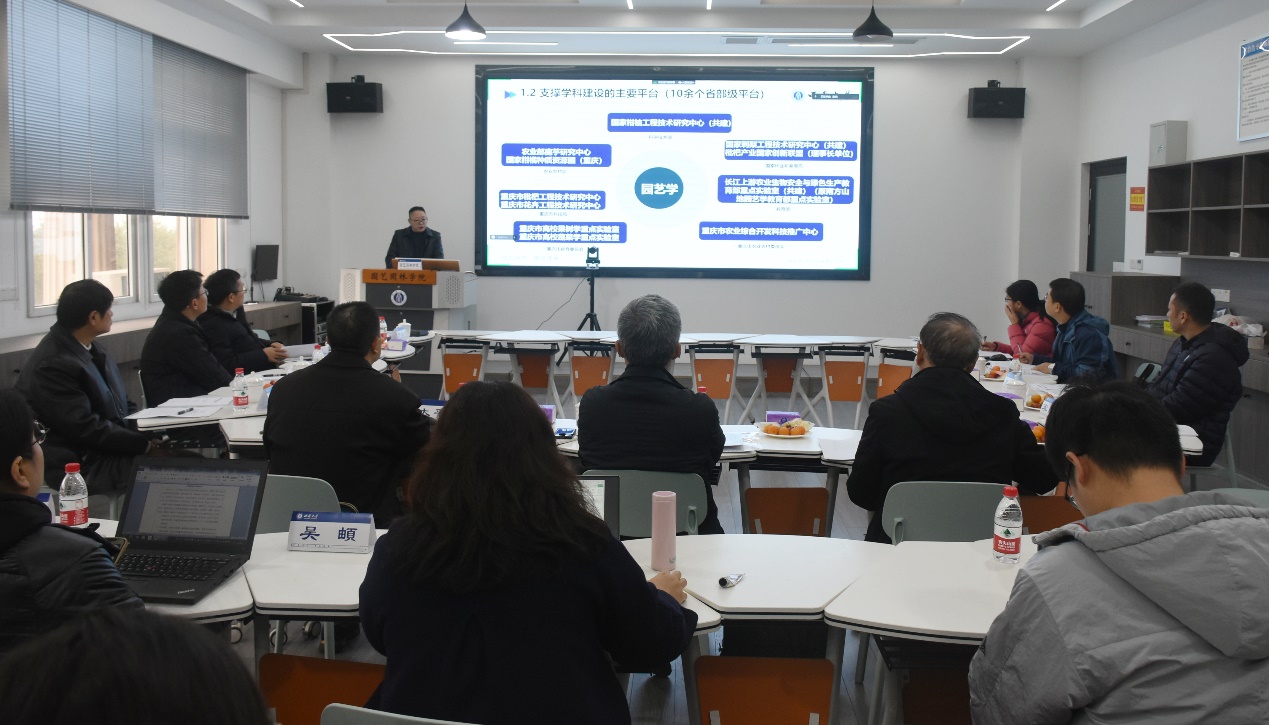 在评估环节,郭启高分别从学科点发展、教育目标、师资队伍、人才培养、科学研究、服务贡献等方面对园艺学博士学位授权点进行了学位点自我评估总结汇报。郭启高副院长首先对学位点发展历史、师资队伍、科研平台、培养目标、学位标准等作了介绍。接着,对人才培养方向、科学研究以及近年取得的科研成果进行了详细介绍。随后,对学位授权点的招生情况、课程体系、学术培养与交流、思政教育、奖助体系、制度建设、学位论文、就业情况、服务贡献等方面进行了全面汇报。