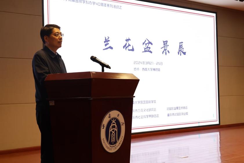 潘玉锋系统介绍了风景园林学科40年的办学历程和发展贡献,阐述了兰花盆景在中华传统园林艺术中的重要作用。他希望通过此次兰花盆景展,能够让老师、同学们深刻领略中华传统文化的魅力,激发对美的追求和创造的热情,共同传承和弘扬中国传统园林艺术的精髓。
