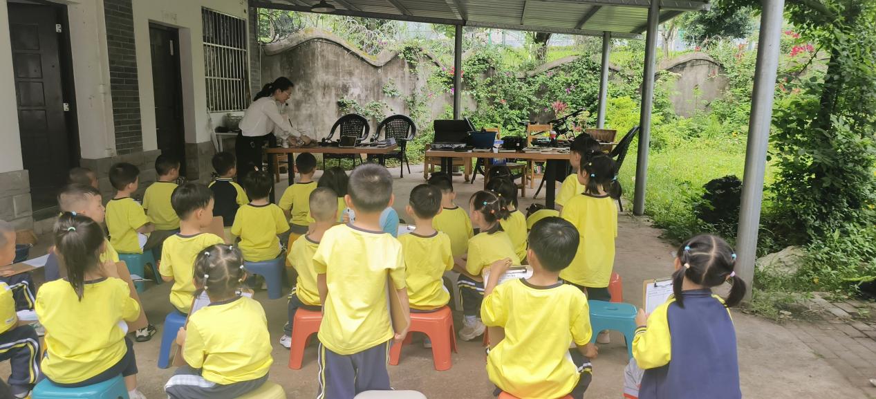 首先,小朋友们通过视频初步了解苔藓的基本信息、生态作用以及与人类生活的联系。接着,庞少萍带领小朋友们认识苔藓的常见种类和形态特征,展示了显微镜下的苔藓结构,并介绍了苔藓的生态习性和应用价值。最后,庞少萍讲述了苔藓对人类生活的贡献,并以一首古诗《苔》的讲解结束了小课堂。随后小朋友们来到户外近距离观察干枯和湿润状态下生长的苔藓,用画笔记录下不同苔藓的特征,并展示和讲解自己画的苔藓。在观察苔藓的基础上,庞少萍进一步为小朋友们讲解苔藓养护相关知识。为了让小朋友们更直观地了解苔藓的养护,庞少萍现场制作了苔藓营养液,演示了营养液的配制方法和使用技巧。