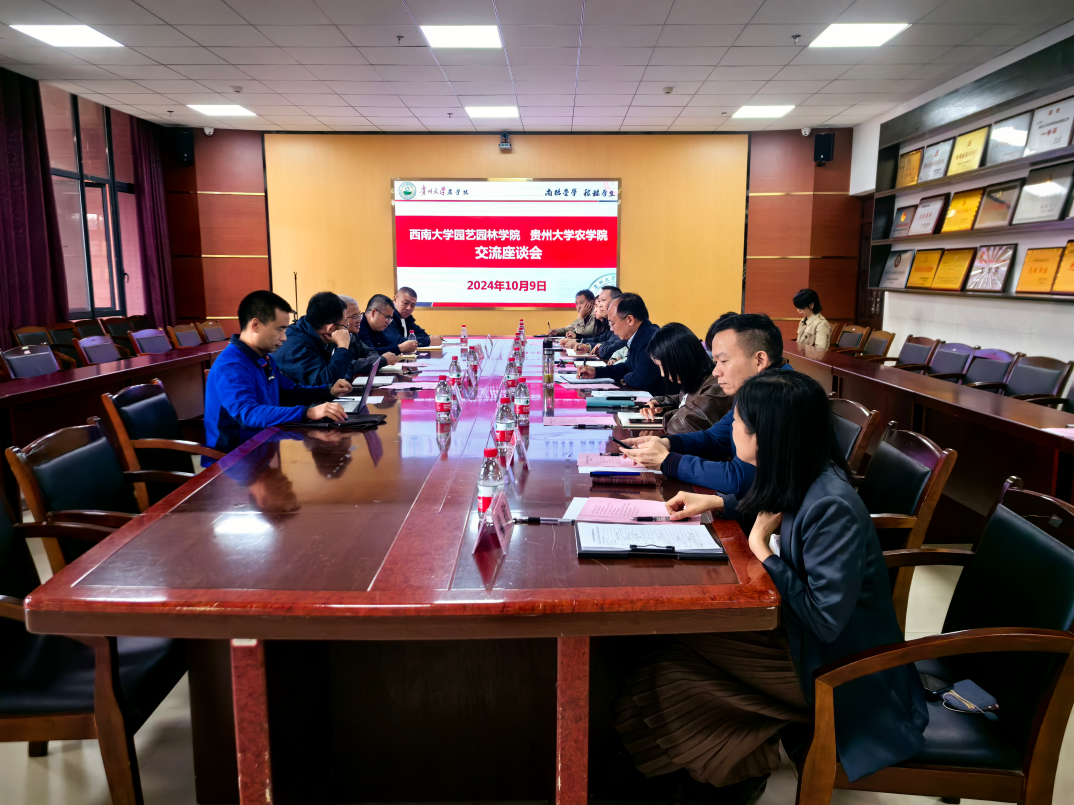 10月9日,学院一行与贵州大学农学院党委书记冉龙彪、院长潘学军和园艺系教师就园艺技能大赛有关情况进行了交流和探讨,并就科研合作、学科建设、人才培养、区域性统编教材等方面进行了良好沟通。同时,双方还围绕学院党建工作、文化建设等领域分享了工作案例,深入开展了经验交流。