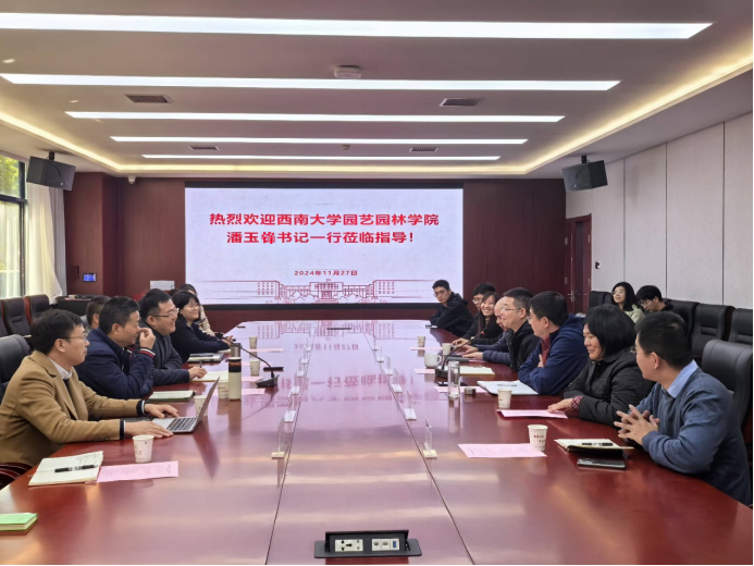 11月27日上午,学院一行在华中农业大学园艺林学学院进行调研。华中农业大学园艺林学学院党委书记龙健飞、党委副书记林辉、设施与智慧园艺系教授欧阳波、风景园林系副教授杜雁、园艺系副教授吴巨勋等参加座谈交流。龙健飞对学院一行到来表示欢迎,他从建院历史、学科优势、科研成果、人才培养、师资队伍建设、社会服务、文化建设、国际合作与交流等方面介绍了有关情况。潘玉锋对学院的热情接待表示感谢,他表示,华中农业大学园艺林学学院在园艺园林领域拥有深厚底蕴和独特优势,园艺学科排名全国首位,希望此行能够学习园艺林学学院在党建引领、学科建设以及人才引育工作方面的成功经验和先进做法,并进一步加强两院间的交流合作。双方就党建体系的构建与创新、园艺学科建设规划与新增长点培育、教师引育政策和职称评审等内容进行了深入探讨。座谈会上,学院一行与园艺林学学院的博士研究生们进行了交流,对明星av
