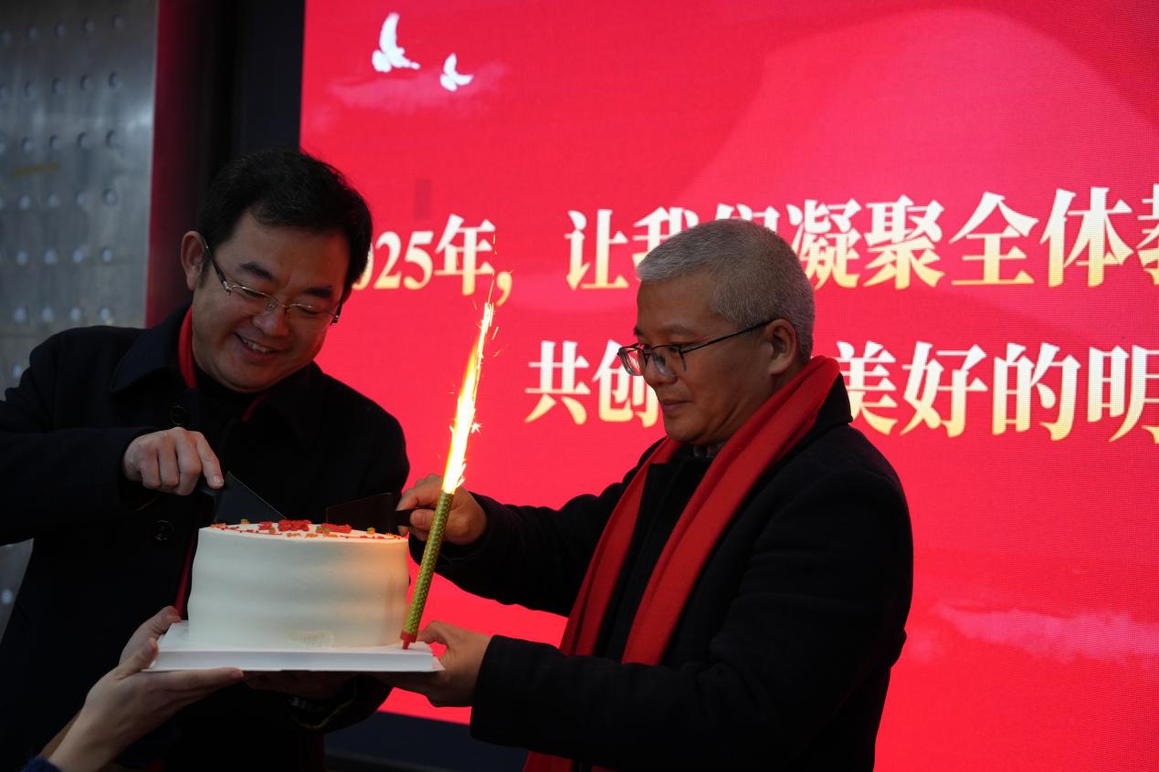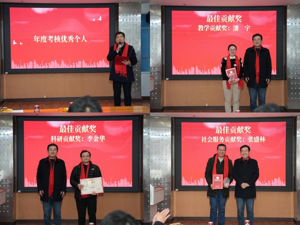 最后,潘玉锋总结讲话,他对学院教职工在过去一年所取得的突出成绩表示由衷感谢,对大家的辛勤付出和无私奉献给予了高度评价。他指出,过去的一年是学院发展历程中具有重要意义的一年,在全体教职工的共同努力下,学院在党的建设、学科发展、人才培养、科学研究和社会服务等多个方面都取得了突破,整体发展呈现出良好态势。他强调,学院要认真贯彻落实党的二十大和二十届三中全会精神,面对高等教育发展改革新形势,珍惜呵护来之不易的团结奋进局面,继续保持干事创业劲头,主动拥抱国际国内环境变化、教育评价改革、行业产业调整、人工智能涌现等带来的新机遇新挑战,凝聚共识,敢想敢干,持续做好人才引育,持续加强学科建设,持续提升培养质量,持续做好社会服务,不断开创学院党建和事业发展的新局面。