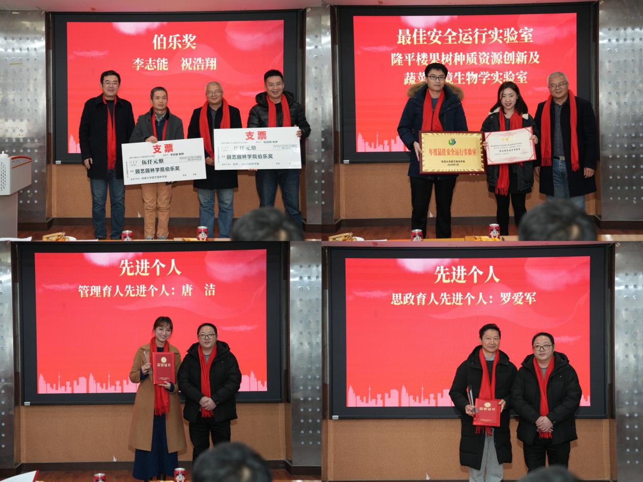 接下来,学院对在过去一年中表现优秀的集体和个人进行了表彰。管理育人先进个人和思政育人先进个人在学生管理和思想政治教育方面做出了积极贡献,他们的工作为学生的成长和发展提供了有力保障。荣誉之星的评选更是备受关注,成长之星、奉献之星、开拓之星、领航之星分别代表了不同领域的突出表现,他们的事迹鼓舞激励全体教职工不断保持奋进、追求卓越。最佳安全运行实验室在实验室管理和安全保障方面表现出色,为学院的教学和科研工作提供了良好的实验环境。伯乐奖是对学院人才引育工作做出突出贡献的教师的肯定。最佳贡献奖包括教学贡献奖、科研贡献奖、社会服务贡献奖他们在各自领域的重要,为学院的发展树立了榜样。学院领导为获奖个人和集体颁发了荣誉证书和奖品,并向他们表示祝贺。