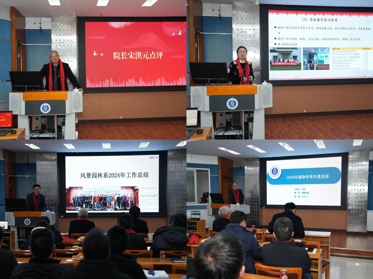 会上,学院领导班子和班子成员分别做述职述廉报告,并进行了领导班子和班子成员民主测评。随后,园艺系、风景园林系、植物系以及工会、教代会依次汇报2024年工作开展情况。园艺系从亮点工作、专业建设、平台建设、学术交流、取得成绩、科普方面、2025年工作计划等方面进行了汇报;风景园林系从学科与专业建设、本科教学、研究生教育与平台建设、科研成果学术报告对外交流人才队伍建设社会服务来年展望等方面进行了汇报;植物系从教学工作、科学研究、育人工作、社会服务、未来规划等方面进行了汇报;工会和教代会也分别汇报了他们在落实学校工作要求、组织开展工会活动、维护教职工权益、促进学院民主管理等方面所做的工作。汇报内容丰富,数据详实,充分展示了过去一年里学院在学科建设、教学服务科学研究和社会合作等方面取得的丰硕成果。