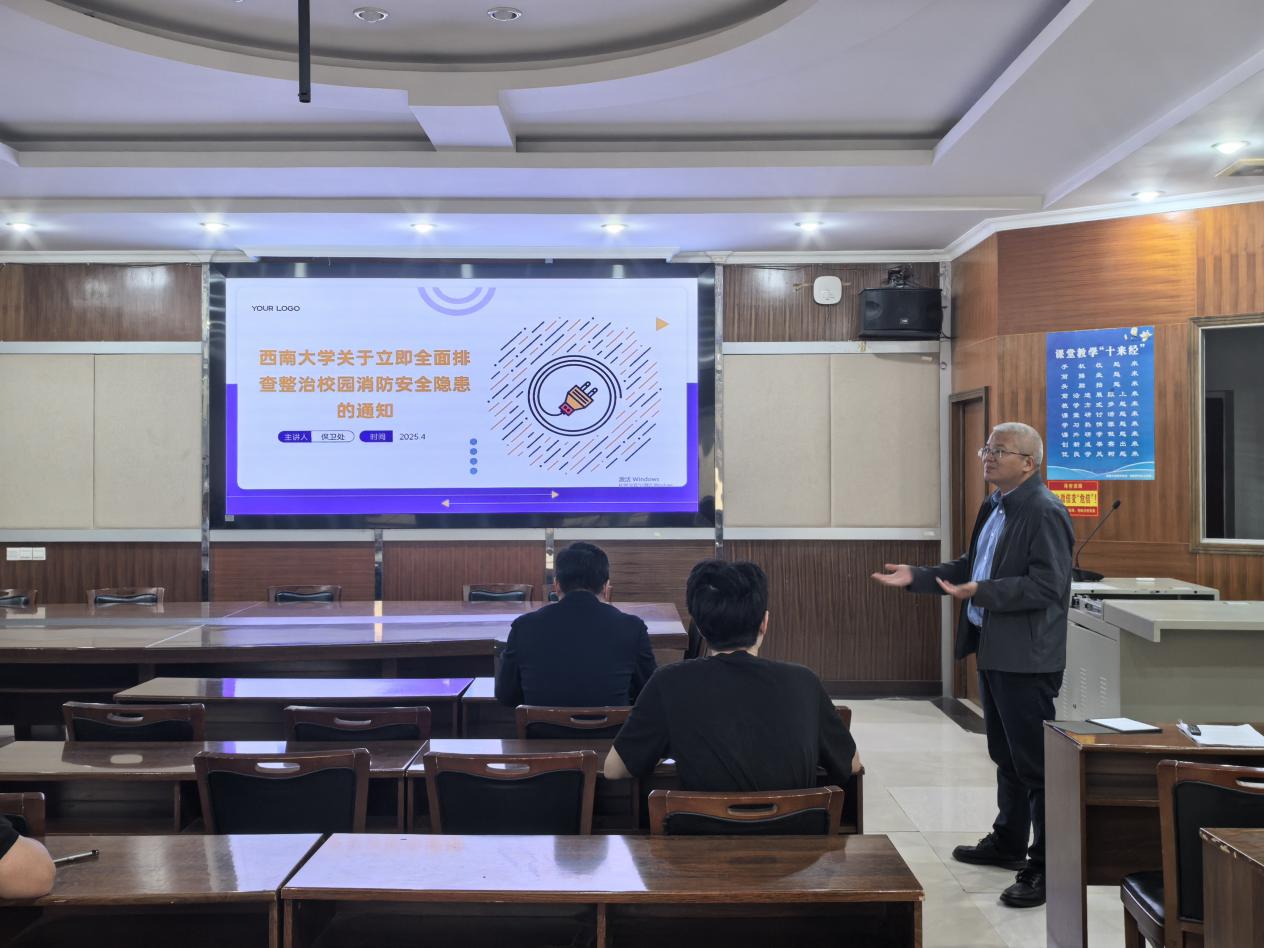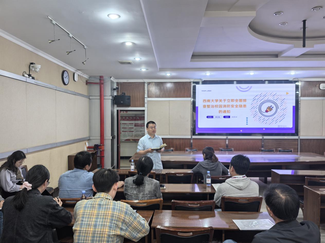 随后,宋洪元传达了学校关于立即全面排查整治校园消防安全隐患的通知。宋院长从工作背景与目标出发,详细阐述了迅速开展隐患排查、扎实整改问题隐患、深化消防宣传培训、提升应急处置能力以及层层压实安全责任等方面的具体要求。他指出,校园消防安全关系到师生的生命财产安全,是学院安全工作的重中之重,各部门要高度重视,切实落实相关工作。