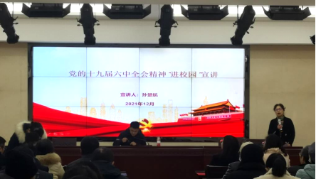 李雪梅书记总结到,学习宣传贯彻党的十九届六中全会精神,是当前和今后一个时期的重大政治任务。我们要全面理解把握党的十九届六中全会精神实质,切实把思想和行动统一到习近平总书记重要讲话精神和党中央决策部署上来。本次宣讲内容丰富、立意深刻,期望老师们将全会精神转化为干事创业的强大动力,以更加昂扬的奋进姿态推动两院高质量发展。