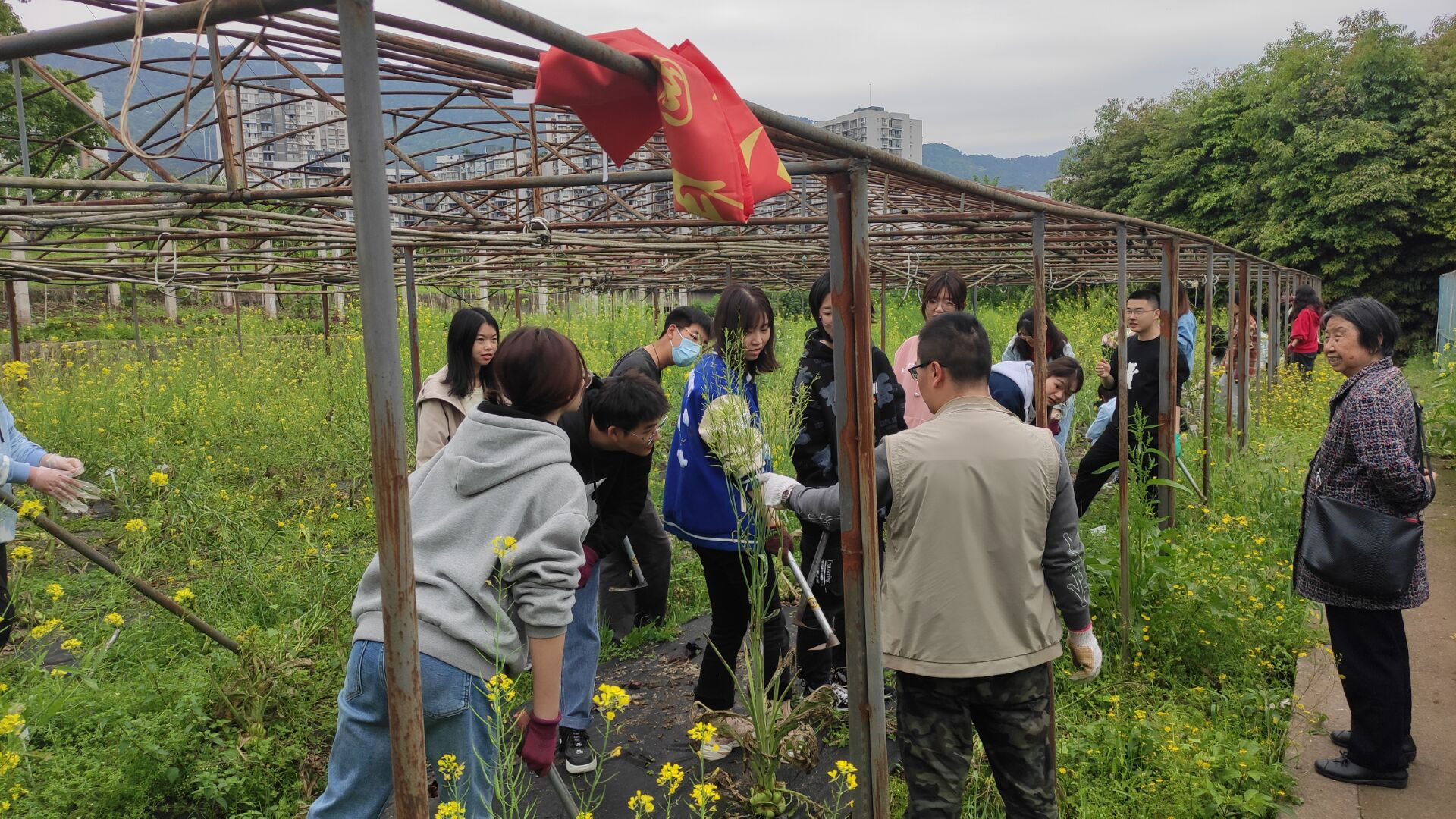 会后,由园艺二支部书记魏大勇老师带队,两个支部成员前往厚艺园开展劳动实践,对芥菜苗圃进行清理和除杂。在老师们的指导下,同学们进一步学习了芥菜软腐病、菌核病的病害表象和甘蓝留种的相关知识。在田间清理和除杂的过程中,各位党员同志通力合作,默契配合,为绿色的希望开辟出更广阔的空间。
