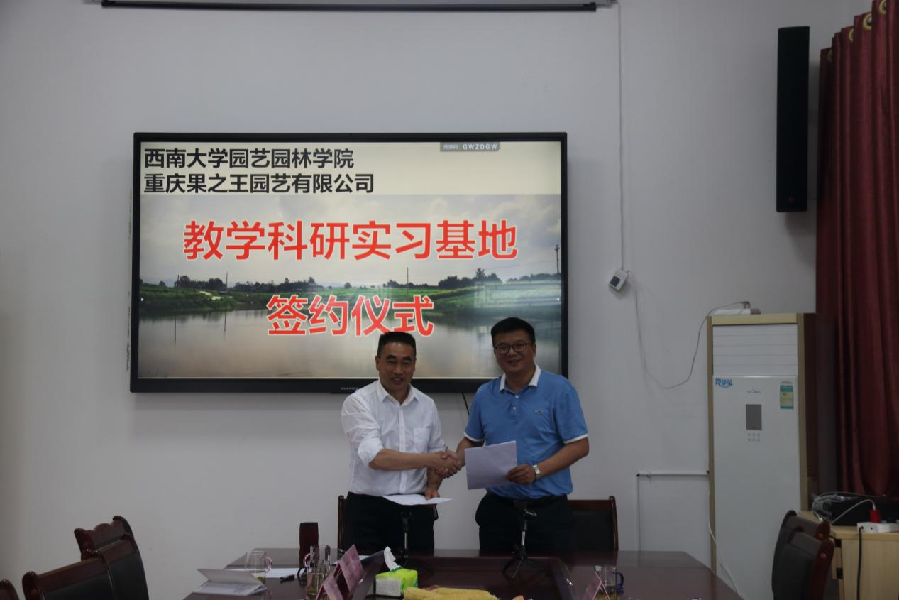 为了进一步推进院企合作,培养更多实用型科技人才,6月12日,学院教学科研实习基地和就业见习基地签约和授牌仪式在成王果业专家大院举行。 学院党委书记李雪梅、院长宋洪元、团委书记胡乐,园艺系副主任何桥,铜梁区科技局局长张跃、副局长王勇、科长罗永超、高级工程师余焕兵,铜梁区农业农村委副主任戴安勇、科长熊杰,市农科院正高级工程师陈正明,果之王园艺有限公司董事长陈贵虎,成王果业公司董事长王坤刚出席仪式和座谈会。