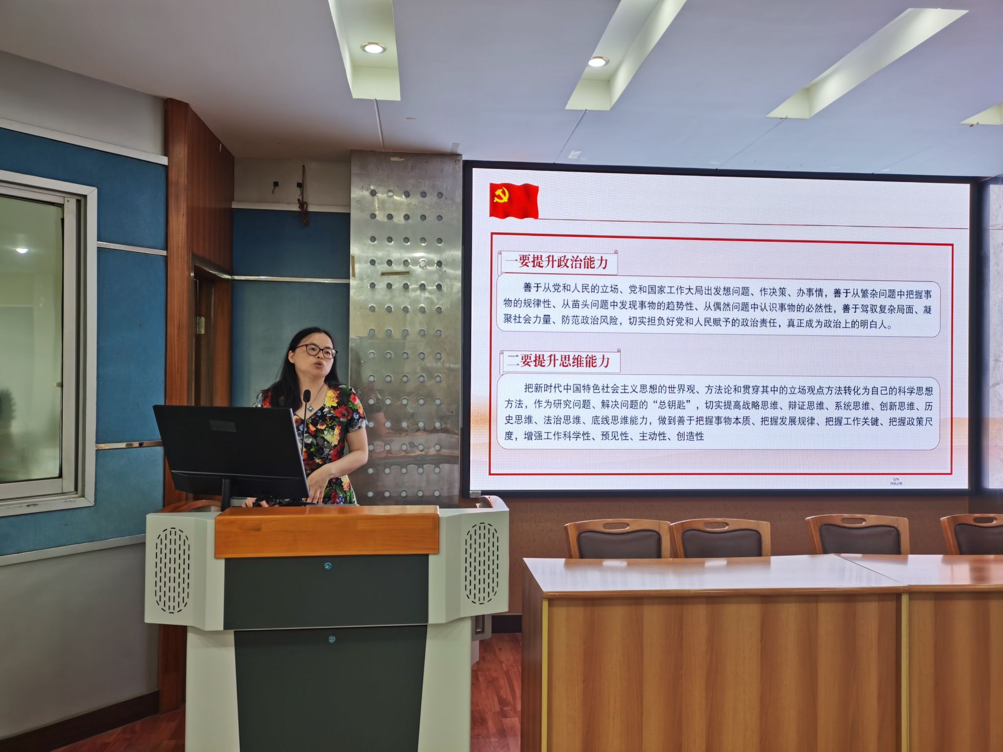 2023年第四次教职工政治理论学习会在33教406报告厅组织召开,全体教职工参加会议。会议由学院党委副书记、纪委书记李小红主持。