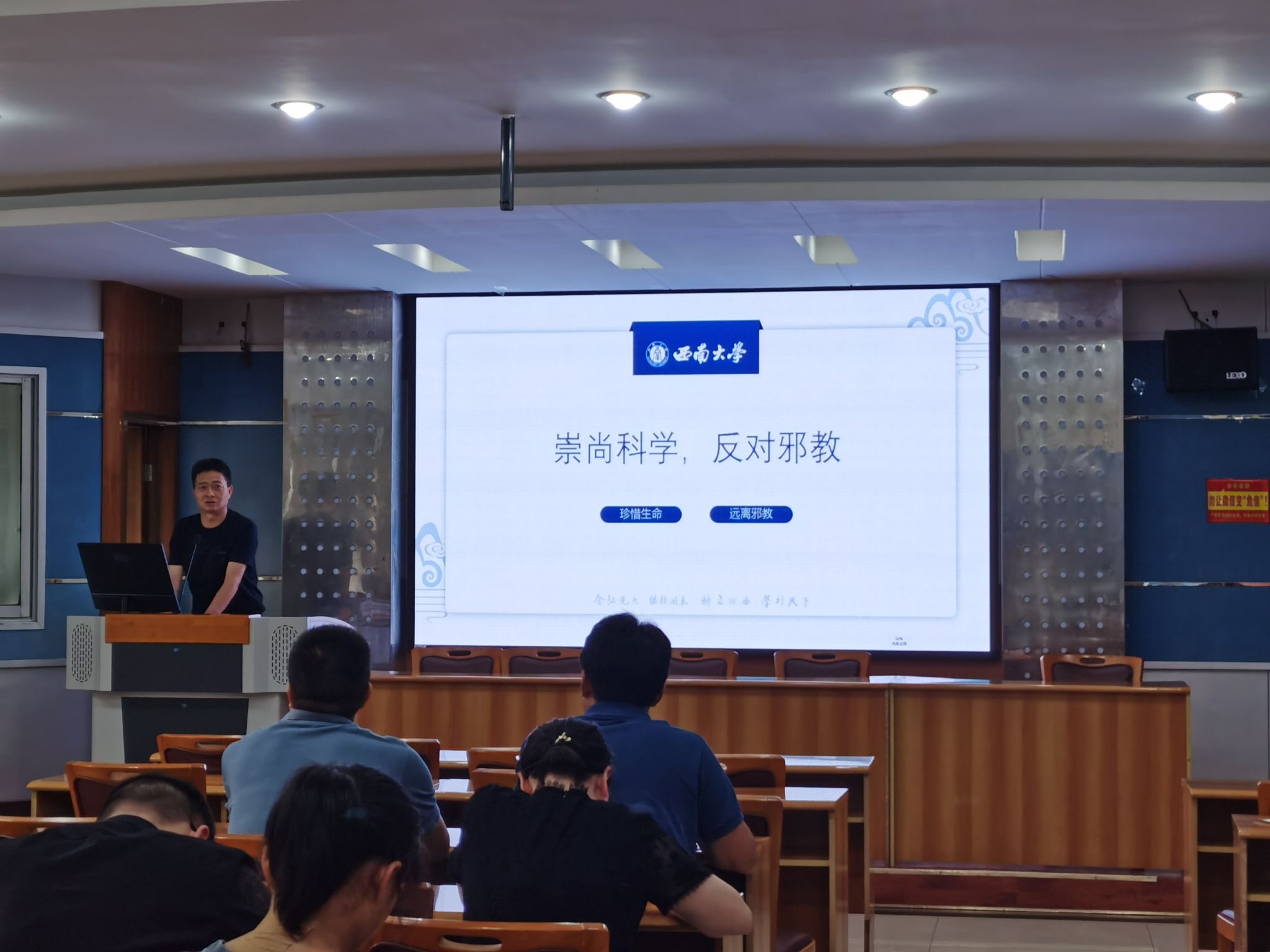 接着,副院长周建华领学反邪教警示教育。周建华以“崇尚科学,反对邪教”为主题,联系实际,从身边邪教知多少,邪教问题无小事,旗帜鲜明反邪教三个方面进行讲解,倡导全院教职工破坚定信仰信念、树立正确“三观”、培养健康心理塑造健康人格、坚守法律底线、增强科学素养。
