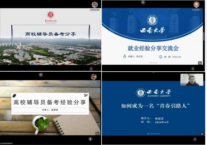 本期活动邀请到四位优秀毕业生榜样为在校生进行经验分享,分别是陈得文,2016级果树学专业研究生、现为重庆师范大学辅导员;石小玉,2020级化学专业研究生、现为明星av