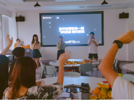 3位中心副主任分别讲话,希望同学们在党建中心的一年内能够认真工作,积极思考,结交挚友,共同把党员教育管理中心建设得更好。随后,各部门进行风采展示。中心副主任组团献唱歌曲《仰望星空》。5个部门依次带来朗诵、合唱、游戏互动等节目。活动现场气氛活跃,同学们热情高涨。
