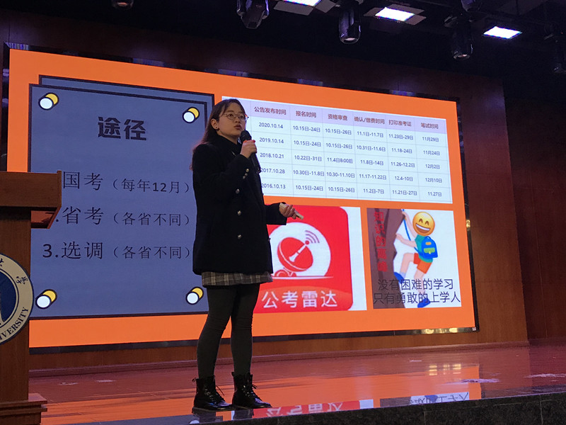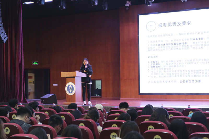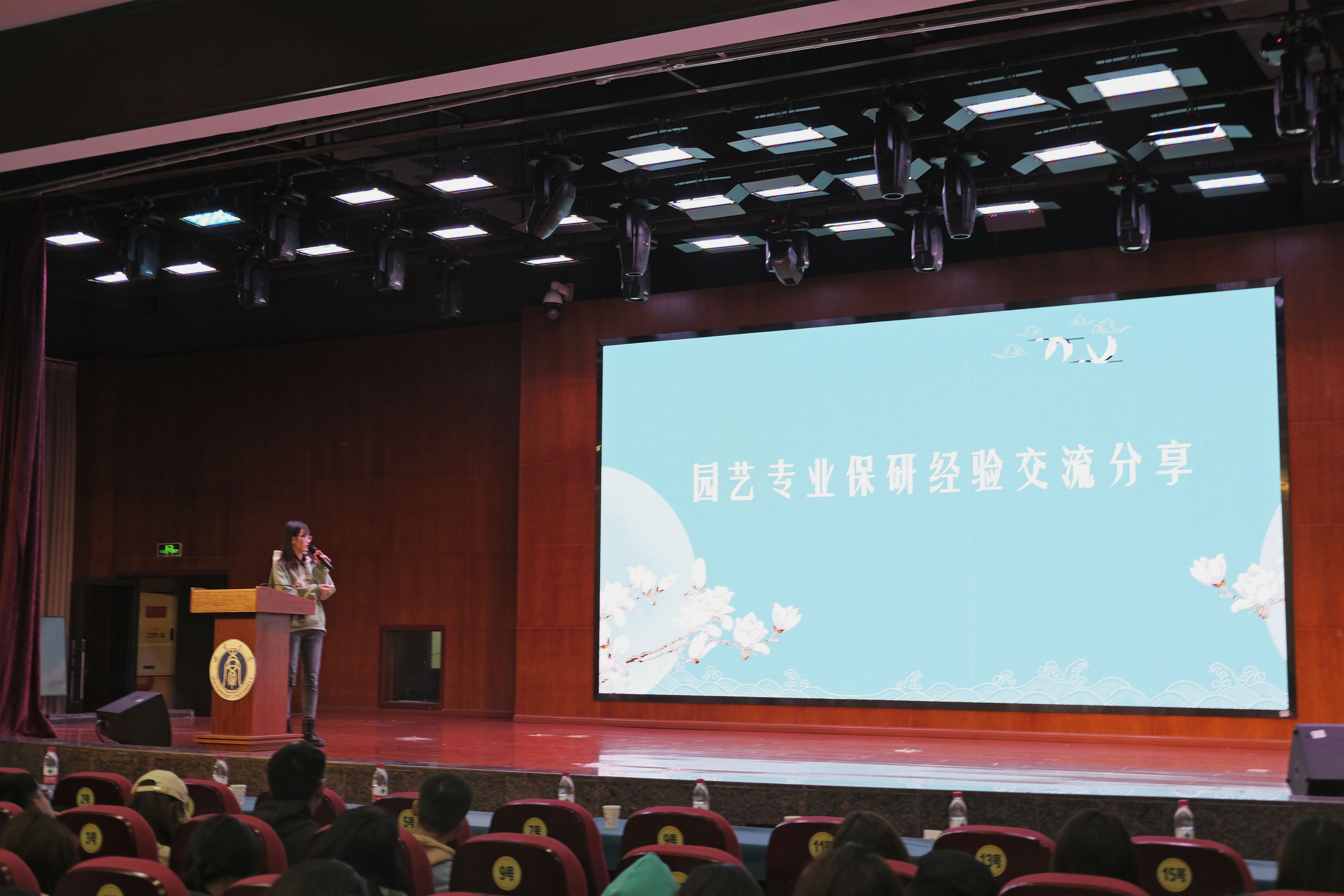 下半场由2017级几位毕业生分享考公、保研、就业经验。17级园林2班李鑫梦和风景园林4班袁月成功考取了选调生,她们以亲身经历分别从自己选择考公的原因、现状、准备、条件等各个方面向大家全面展示了公务员考试,为有意向考公务员的同学提供了努力的方向。17级园艺2班的张佳欣和秦亚丽、园林3班的赖燚向同学们介绍了保研的大致流程、保研名额以及为此需要做的准备等。