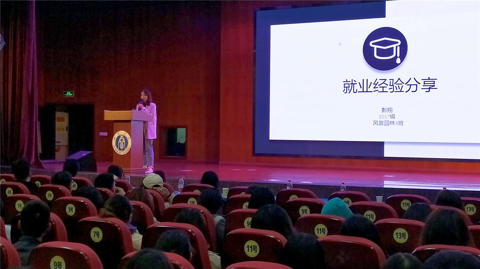 17级园林4班虎占龙、园林1班张琦、风景园林4班王瑞雪都签约了吉盛星管培生。他们分享了如何制作一份漂亮的简历、利用好就业信息渠道、在实践中抓住机会锻炼自己的能力等宝贵经验,为同学们指点迷津。