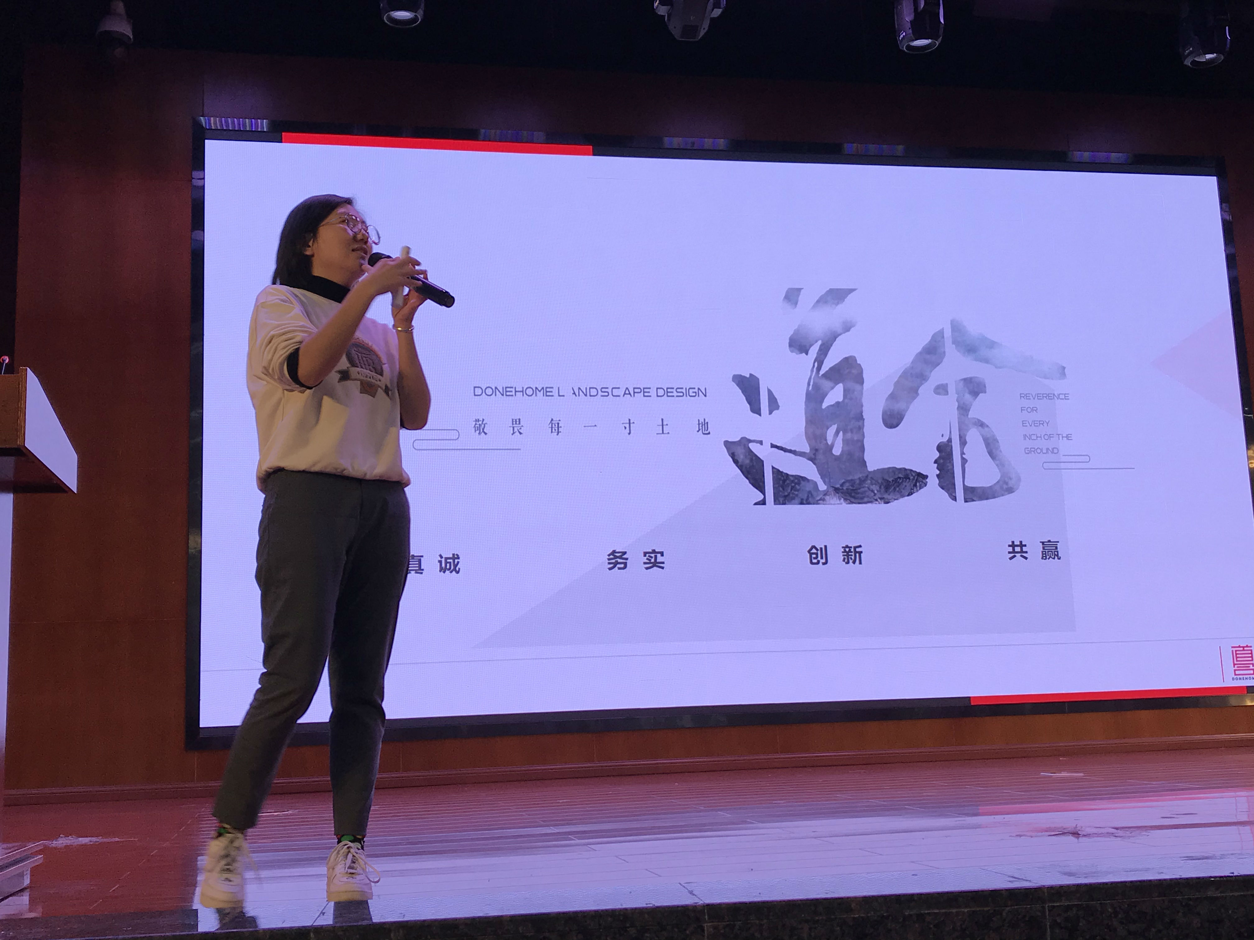 分享会由胡继超老师主持。上半场由重庆道合园林景观规划设计有限公司城市更新所部门负责人余梅主讲。她通过对公司简介、具体城市案例解读、结合个人经历,引导大家选择自己感兴趣的方向,发挥专业特长。“理想与现实之间必然存在差距,设计之路更是荆棘丛生。只要我们脚踏实地,一定能成就辉煌的人生。”