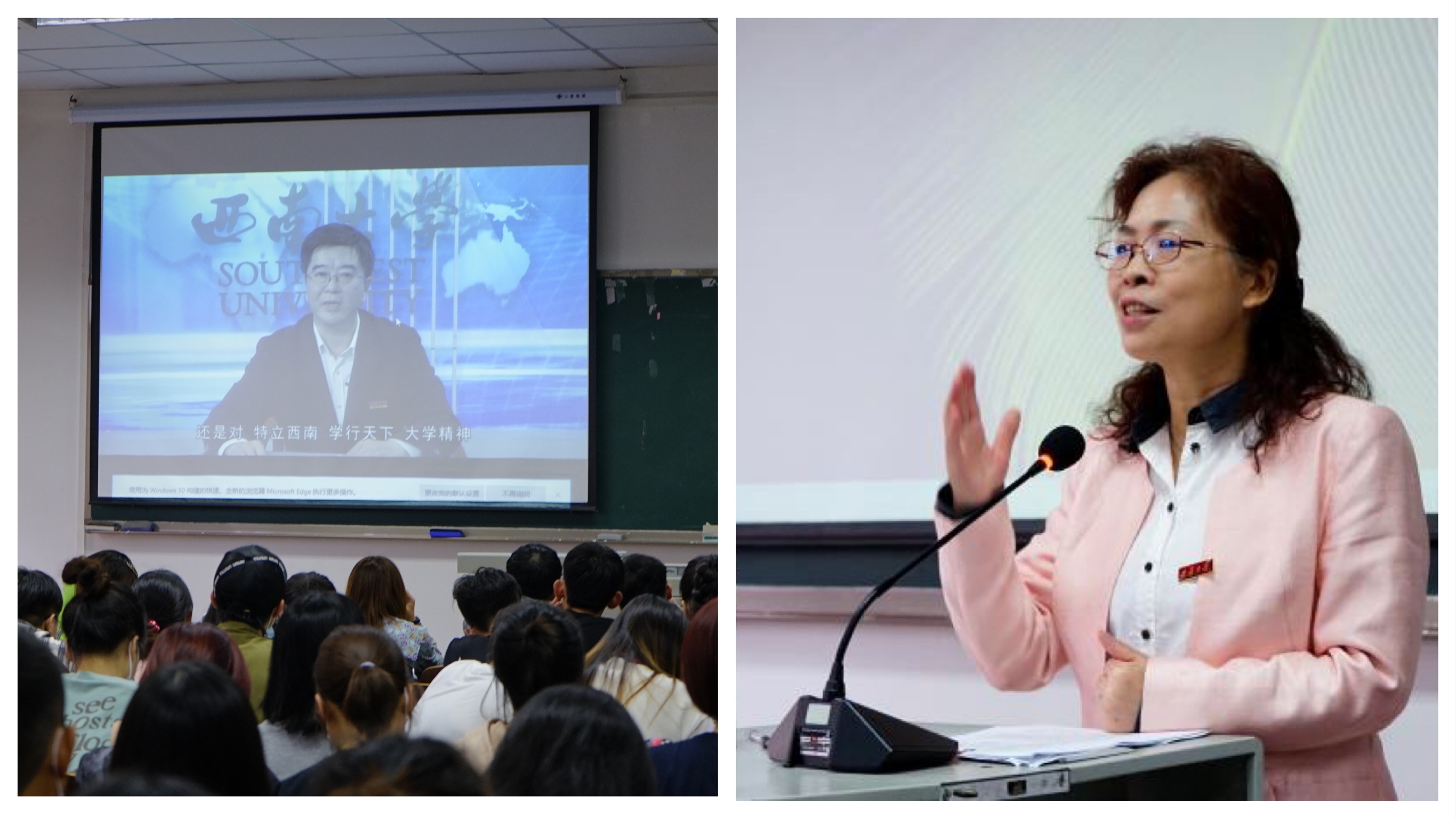 为培养新生的爱校意识,学院组织新生参观校史馆和图书馆、观看学校专题宣传片、学习校训、学唱校歌。在校史解说员的讲解下,西大人生生不息的奋斗发展史一一呈现在同学们眼前,大家领略到了西大的百年荣光,也对“含弘光大、继往开来”的校训有了更为深刻的理解,并以此激励自己不断奋斗,继承西大求真务实、自强不息的优良传统。通过实地参观中心图书馆,学习检索、借阅图书的方法并了解图书馆的整体布局和功能分区,同学们感受到了学校浓厚的求知氛围。通过学校史知校情,大家纷纷表达着对西大的热爱,对成为一名西大人的自豪,对为西大荣光增光添彩的决心。