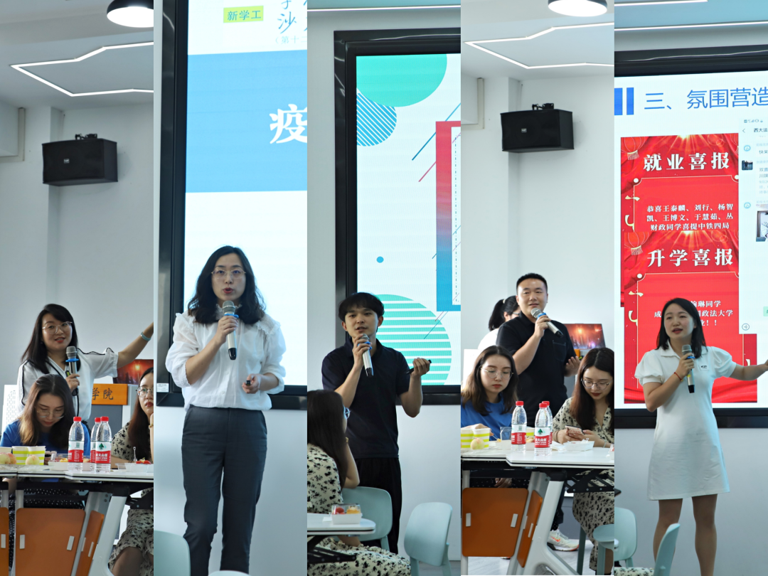 趋势思维上,围绕【聚焦核心力量,提高生态位】,面对“因世择业就业竞争力的提升之道”,国家治理学院党委副书记王晖、马克思主义学院辅导员罗艺、化学化工学院团委书记何松、药学院团委书记肖媛媛分别以“新时代复合型人才培养模式”“新时代高素质师范生的成长路径”“创新创业人才的精进之路”“考研群体的分类培养”为题,实践探索了职业化思维塑造、学生社团共育师范生素养、创新实验班与校企合作创新驱动、全程化精细化考研服务的“新”站位。