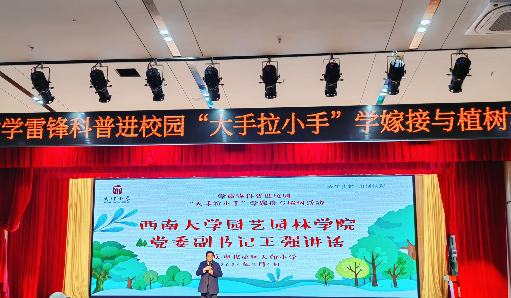 春花烂漫的季节,志愿红的颜色最美丽。为弘扬雷锋志愿服务精神,践行党员先锋模范作用,3月5日下午,学院党委副书记王强、园艺本科生党支部书记邓珍珍带领园艺本科生党支部的志愿者们走进北碚区天印小学,开展了以“学雷锋科普进校园,‘大手拉小手’学嫁接”为主题的科技志愿服务活动。