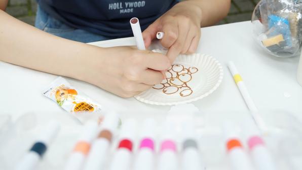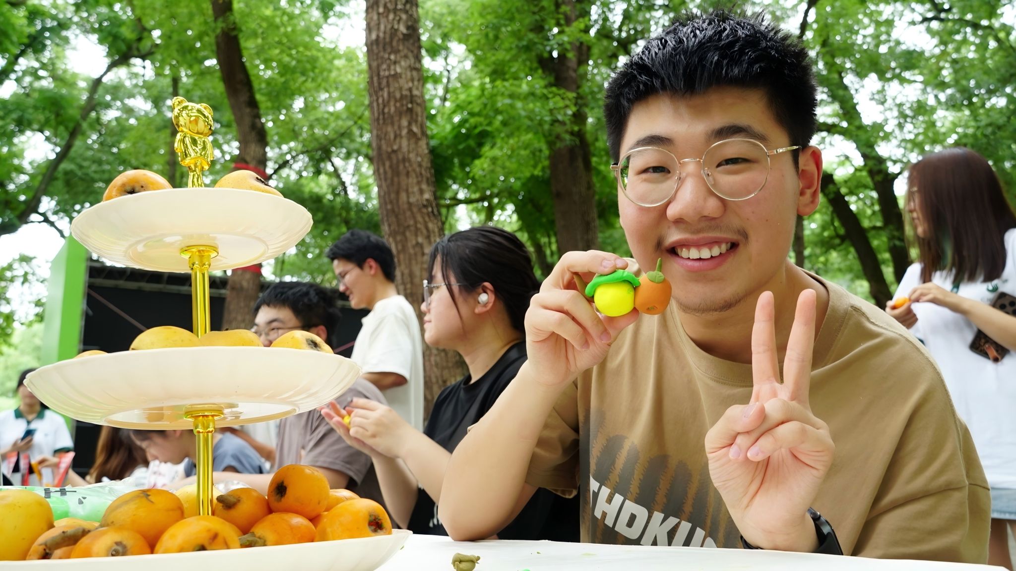 “果韵工坊”里,套圈、手工、绘画环节精彩纷呈。套圈区域,参与者们绞尽脑汁背诵植物诗句、抢答知识问题,只为赢得套圈机会,现场气氛紧张又热烈;手工创作处,大家以枇杷为灵感,用超轻粘土塑造出形态各异的果实造型;绘画区域,参与者们借助画笔和圆纸,将枇杷的神韵生动呈现,用艺术形式诠释对果实的理解,大家在欢声笑语中尽情享受游戏带来的快乐。