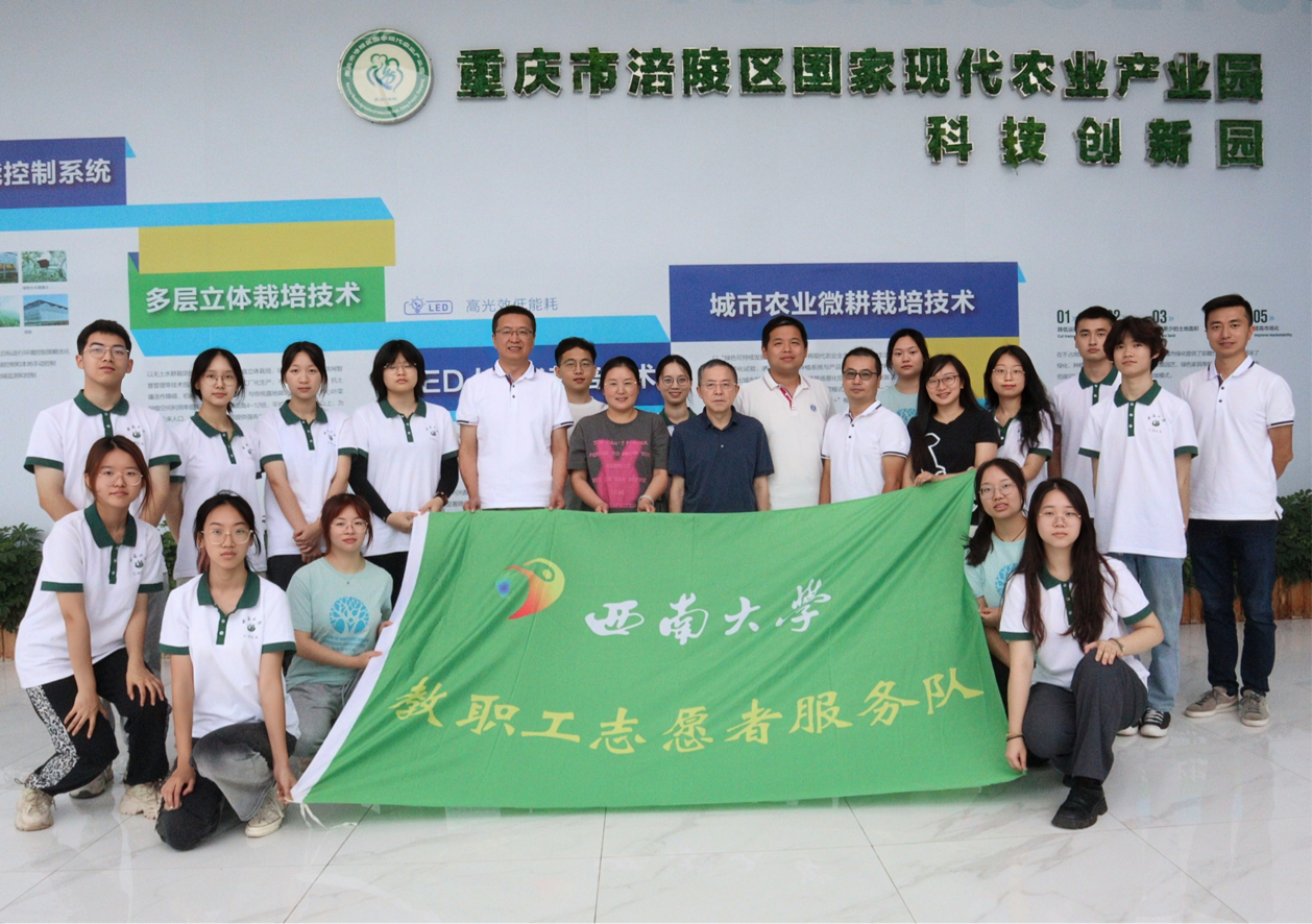 2023年7月4日,学院工会牵头,联合学院团委与学生志愿者,赴重庆市渝东南农业科学院开展志愿者“三下乡”活动。本次活动旨在发挥学院专业优势,有针对性地开展志愿服务活动,首先,渝东南农科院饶玲和李文平老师带领大家一起参观了重庆市涪陵区国家现代农业产业园和研学教育实践基地,讨论了立体栽培、品种搭配和病虫害防治等工作。