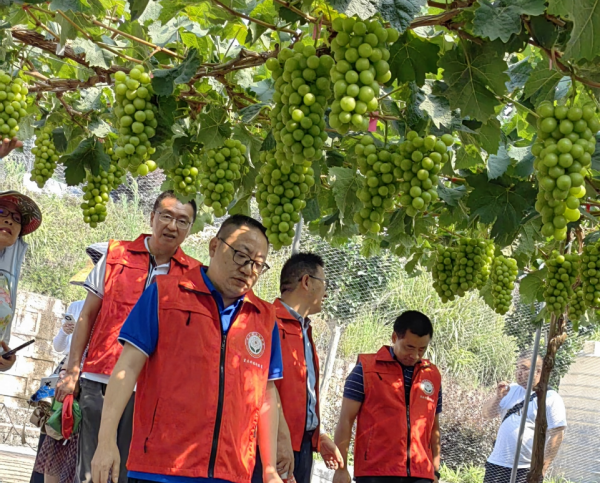 7月18日上午,伴着金色朝霞,特派员们精神抖擞地开始了新一天的“三下乡”活动,经过快1个半小时的车程,来到了学院科技特派员服务最多的渝北区,第一站到达兴隆镇“晚秋·逅”葡萄基地,这里有灯塔、有野花,而最诱人的莫属颗粒饱满圆润、挂满树梢、正值最佳采摘期的各种类型的葡萄。