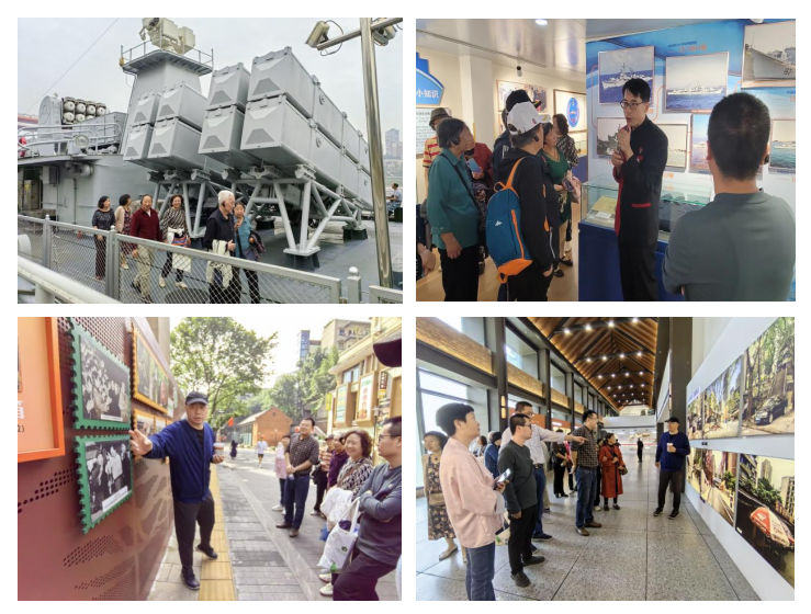 活动伊始,离退休老教师们来到重庆建川海疆博物馆,登上了功勋赫赫的中国人民解放军海军166舰。站在雄伟的军舰之上,缓缓走过甲板,抚摸着那坚固的栏杆,仿佛触摸到了伟大祖国的澎湃力量。船舱内精密的设备、整齐的布局令人赞叹不已,舰舱空间狭小却充满温暖,他们聆听着讲解员的介绍,了解着军舰性能和海军战士们的英勇事迹。回忆起往昔的岁月,曾经的艰难困苦与如今盛世中国形成鲜明对比让人不禁感慨万千,同时也无比催人奋进。
