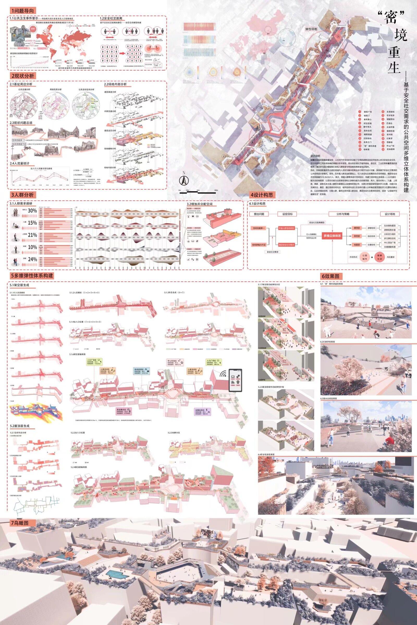 刘磊副教授指导的风景园林专业学生王熙盛/吴梦婷/邵祎璠/彭怡作品《“密”境重生——基于安全社交需求的公共空间多维立体体系构建》获研究生组三等奖。